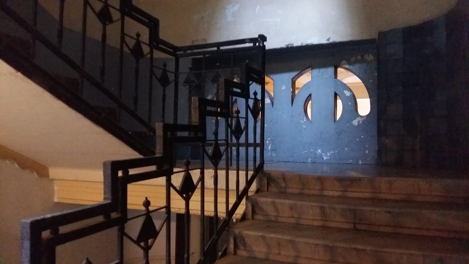 A körfolyosó rövidebb szakaszai kőből, a hosszúak fémkorláttal keretezettek, ez az a „névjegy”, amiről Fodor Gyula munkái – eddigi tapasztalatom alapján – biztosan felismerhetőek.
