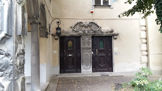 lakást rejtett. Olaszos vonalak, díszes kapuzat , elegáns lépcsősor vezet a szélesa díszes kőkeretbe faragott tölgyfa (?) ajtóhoz.